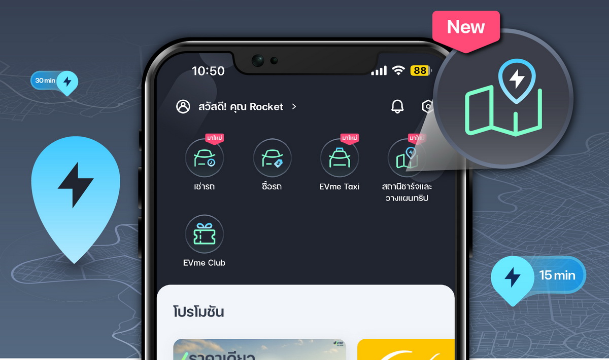 EVme อัพเลเวลแอปพลิเคชันไปเมื่อเร็วๆนี้ โดยมีการเพิ่มฟีเจอร์รวมจุดชาร์จแบรนด์ต่างๆ ไว้ในแอปมากกว่า 3,700 สถานี สามารถส่องดูประเภทหัวชาร์จและสถานะหัวชาร์จได้แบบ Real time เช็กได้ว่าตู้ชาร์จยังว่างอยู่หรือไม่ มีหัวชาร์จที่รองรับรถที่ใช้อยู่หรือเปล่า เพื่อไม่ให้ขับรถไปเสียเที่ยว
