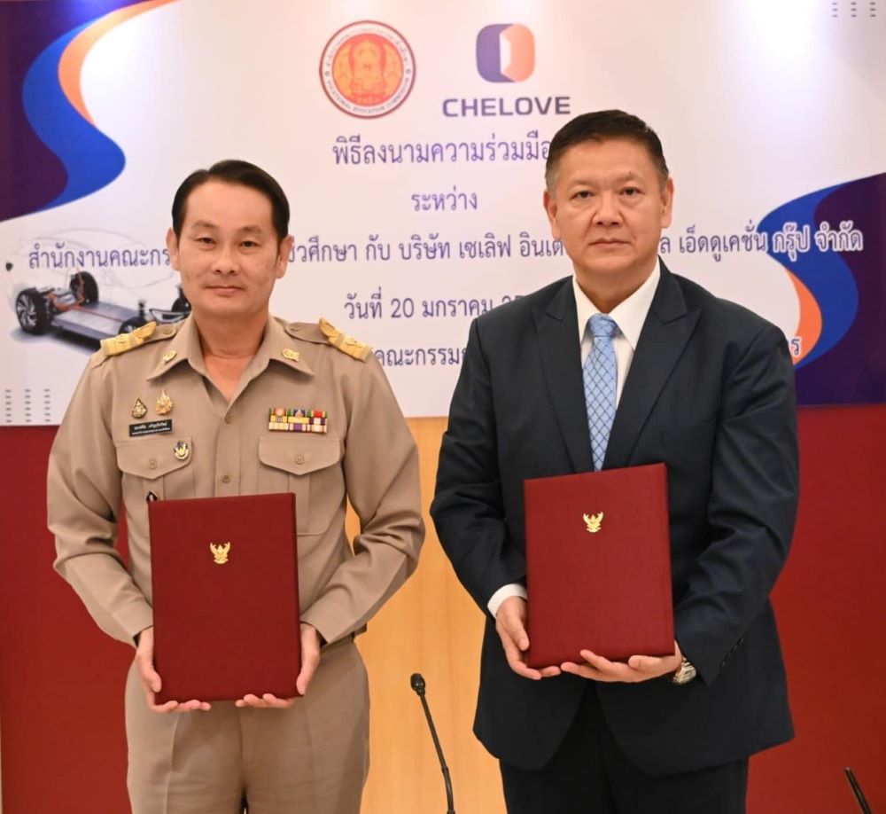 สอศ. จับมือ CHELOVE ยกระดับการศึกษายานยนต์พลังงานใหม่ มุ่งผลิตบุคลากรรองรับอุตสาหกรรมยานยนต์ในประเทศไทย พร้อมร่วมมือพันธมิตรพัฒนาหลักสูตรและจัดอบรมที่รับนักศึกษาได้ 1,000 คนต่อปี