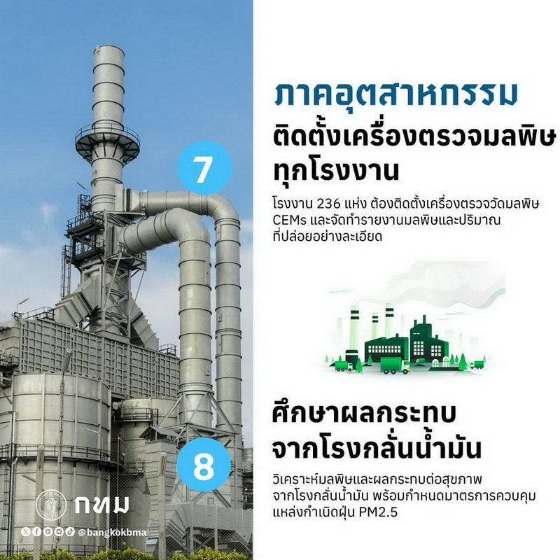 7.ติดตั้งเครื่องตรวจมลพิษ ทุกโรงงาน โรงงาน 236 แห่ง ต้องติดตั้งเครื่องตรวจวัดมลพิษ CEMs และจัดทำรายงานมลพิษและปริมาณที่ปล่อยอย่างละเอียด