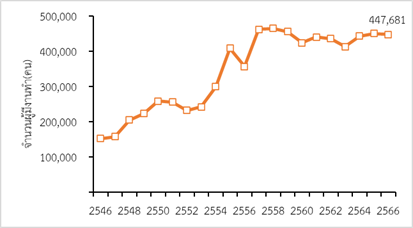 รูปที่ 1 จำนวนผู้มีงานทำในอุตสาหกรรมยานยนต์และชิ้นส่วน ปี 2546-2566