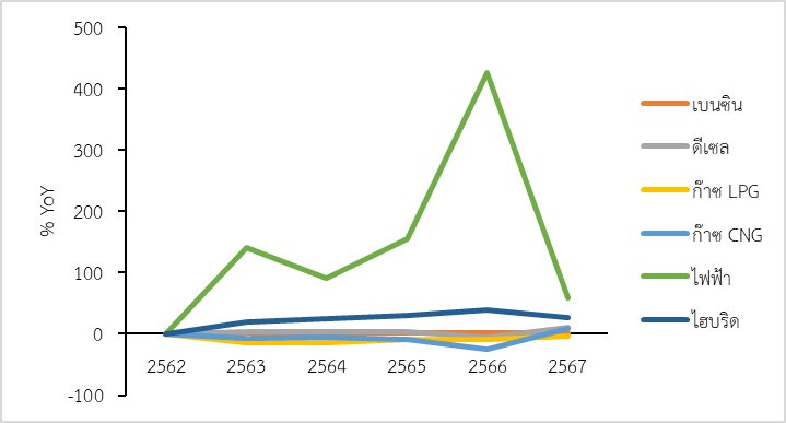 ที่มา : ดัดแปลงจากข้อมูลรายงานสถิติการขนส่ง ปีงบประมาณ พ.ศ.2562-2567 โดยกรมการขนส่งทางบก