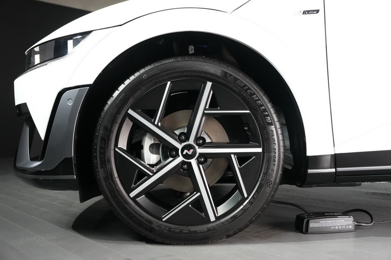 ระบบเบรกใหม่ คาลิเปอร์เบรคหน้าแบบ 4 ลูกสูบ จานดิสค์เส้นผ่านศูนย์กลาง 400 มม. ด้านหลังขนาด 360 มม. ล้ออะลูมิเนียมขึ้นรูปลายใหม่ขนาด 21 นิ้ว ใส่ยางขนาด 275/35R21 ของ Pirelli P-Zero ที่ออกแบบมาสำหรับรถ EV โดยเฉพาะ