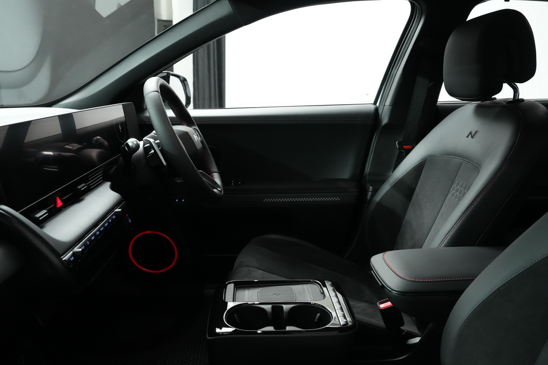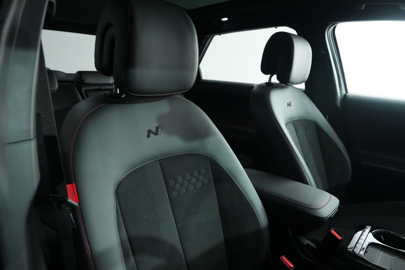 ภายในห้องโดยสาร ติดตั้งเบาะทรงบัคเก็ทแบบรถแข่ง พวงมาลัยออกแบบใหม่ พร้อมปุ่ม 4 ปุ่มที่ใช้เลือกโหมดการขับขี่แบบกำหนดเอง ไฮไลท์คือฟังก์ชั่นโหมด NGS หรือ N Grin Shift ซึ่งจะเพิ่มแรงบิดให้อย่างต่อเนื่องในระยะเวลาหนึ่ง ตัวระบบจะจำลองการทำงานในช่วงโอเวอร์บูสท์ของเทอร์โบชาร์จ และเพิ่มแพดเดิลชิฟท์พิเศษสำหรับเรียกใช้งานระบบชาร์จไฟกลับขณะเบรค