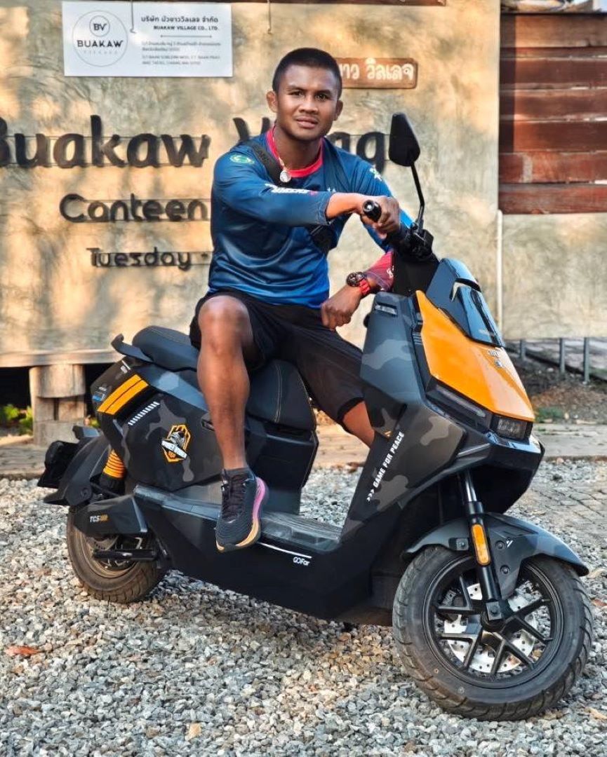 บัวขาว บัญชาเมฆ โพสต์ภาพถ่ายคู่กับมอเตอร์ไซค์ไฟฟ้าคู่ใจ NIU FX Play Pro ลายพราง พร้อมกับระบุว่า...สกู๊ตเตอร์คู่ใจ NIU FX Play Pro ที่พร้อมพาผมลุยไปกับทุกเส้นทาง เพียงแค่ชาร์จแบตก็พร้อมออกไปลุย!