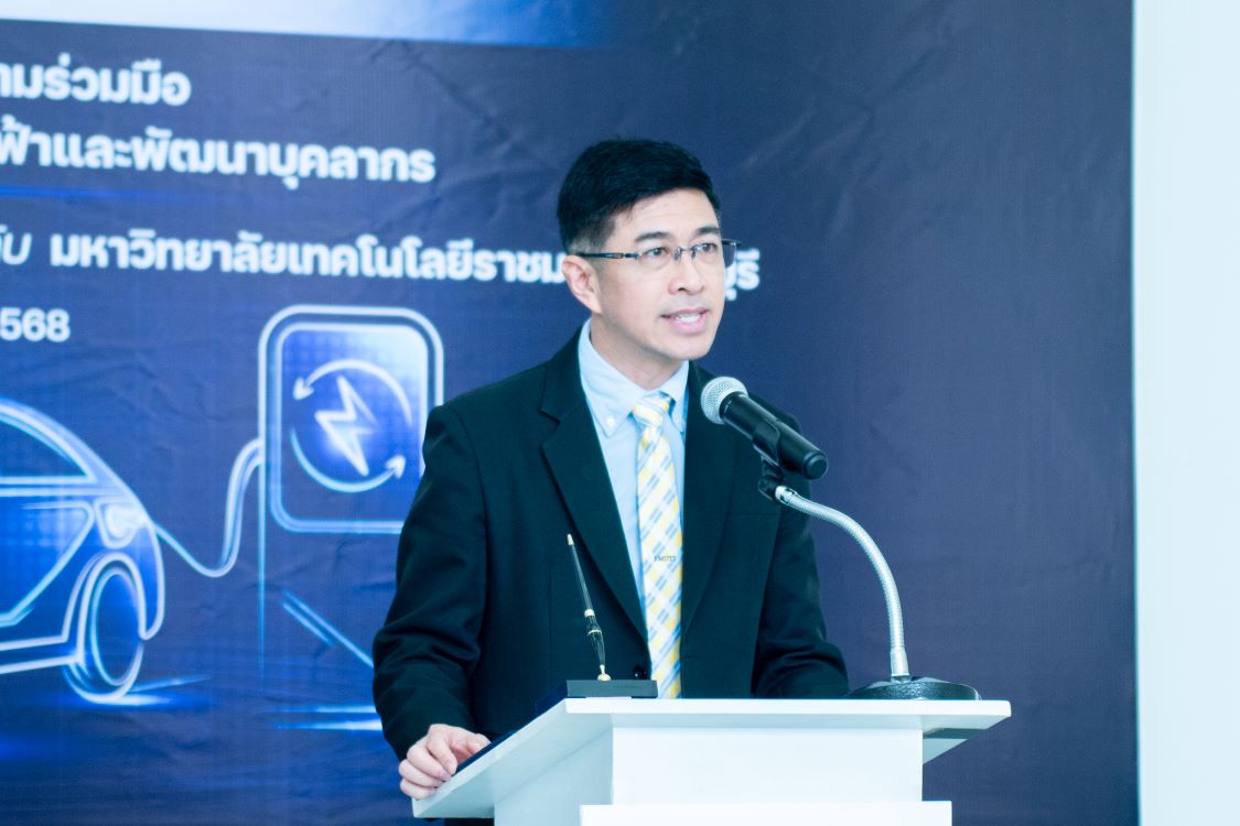 ผศ.ณัชติพงศ์ อูทอง รองอธิการบดี มทร.ธัญบุรี กล่าวว่า มหาวิทยาลัยเทคโนโลยีราชมงคลธัญบุรี มีบทบาทสำคัญในการส่งเสริมการวิจัยและพัฒนายานยนต์ไฟฟ้า ด้วยความมุ่งมั่นในการสร้างนวัตกรรมและเทคโนโลยีที่ทันสมัยเพื่อสนับสนุนการใช้พลังงานสะอาด เราเน้นพัฒนาบุคลากรที่มีทักษะและความรู้ รองรับความต้องการของอุตสาหกรรมและสังคม การลงนามบันทึกข้อตกลงในวันนี้ยืนยันถึงความร่วมมือในการส่งเสริมการใช้ยานยนต์ไฟฟ้าในประเทศไทย ราชมงคลธัญบุรีมีทีมงานวิจัยที่เชี่ยวชาญและการพัฒนาหลักสูตรการเรียนการสอนเพื่อตอบสนองตลาดแรงงาน ซึ่งเรามีความมุ่งมั่นพัฒนาบุคลากรด้านยานยนต์ไฟฟ้า พร้อมจัดการฝึกอบรมเพื่อกระตุ้นการเติบโตและพัฒนาอุตสาหกรรมนี้อย่างมีประสิทธิภาพต่อไป
