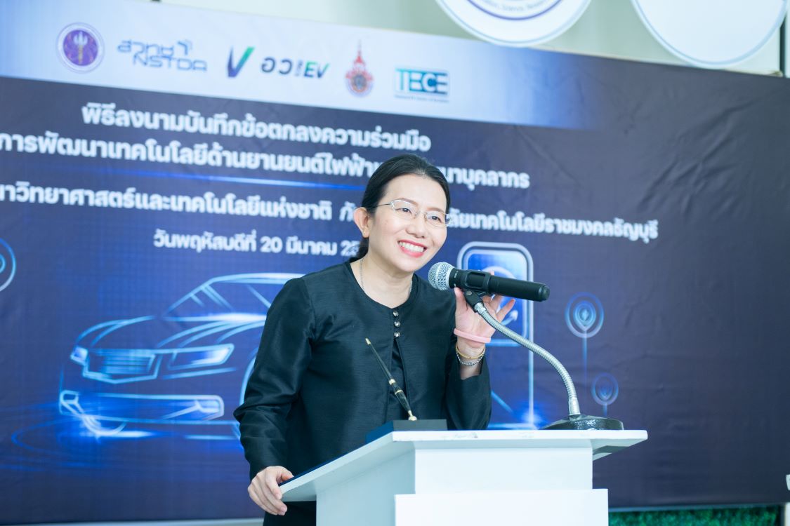 ดร.สุมิตรา จรสโรจน์กุล ผู้อำนวยการ ENTEC สวทช. กล่าวว่า การพัฒนาเทคโนโลยียานยนต์ไฟฟ้ามีความสำคัญอย่างยิ่งในยุคปัจจุบัน เนื่องจากยานยนต์ไฟฟ้าช่วยลดการใช้พลังงานจากฟอสซิล ลดมลพิษทางอากาศและเสียง ซึ่งเป็นประโยชน์ต่อสิ่งแวดล้อมและสุขภาพของประชาชน การลงนามความร่วมมือแสดงถึงความมุ่งมั่นพัฒนาเทคโนโลยีและโครงสร้างพื้นฐานสำหรับยานยนต์ไฟฟ้าเพื่อสร้างอนาคตที่ยั่งยืนและลดก๊าซเรือนกระจก ในมิติเพิ่มอัตราการเติบโตทางเศรษฐกิจ ในโครงการเทคโนโลยียานยนต์ไฟฟ้า ตามกลยุทธ์ การพัฒนาวิทยาศาสตร์และเทคโนโลยีเพื่อประเทศไทยที่ยั่งยืน (S&T Implementation for Sustainable Thailand) ของ สวทช.