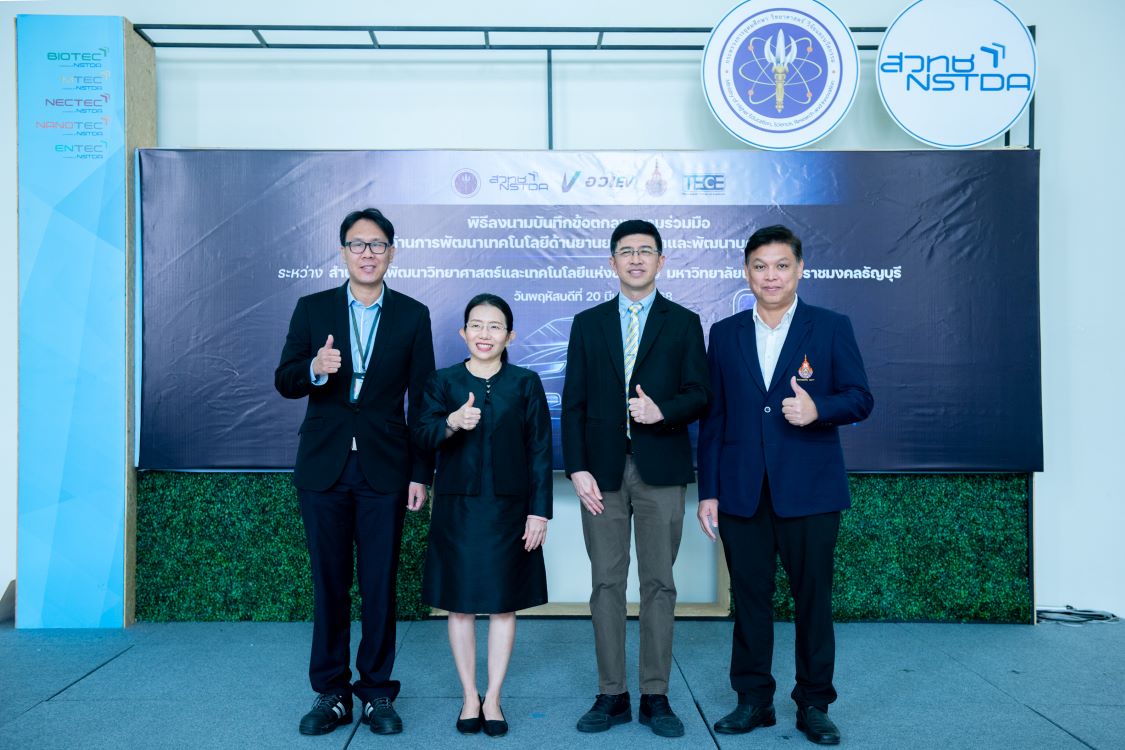 สำนักงานพัฒนาวิทยาศาสตร์และเทคโนโลยีแห่งชาติ (สวทช.) และมหาวิทยาลัยเทคโนโลยีราชมงคลธัญบุรี (มทร.ธัญบุรี) ร่วมลงนามบันทึกข้อตกลงความร่วมมือ (MOU) ด้านการพัฒนาเทคโนโลยีด้านยานยนต์ไฟฟ้าและพัฒนาบุคลากร ก้าวสำคัญต่อการพัฒนาเทคโนโลยีและโครงสร้างพื้นฐานที่จำเป็นสำหรับยานยนต์ไฟฟ้า เพื่อสร้างอนาคตที่ยั่งยืนและลดการปล่อยก๊าซเรือนกระจก โดยมี ดร.สุมิตรา จรสโรจน์กุล ผู้อำนวยการศูนย์เทคโนโลยีพลังงานแห่งชาติ (ENTEC) สวทช. ผศ.ณัชติพงศ์ อูทอง รองอธิการบดีมหาวิทยาลัยเทคโนโลยีราชมงคลธัญบุรี เป็นประธานลงนามความร่วมมือ ณ อุทยานวิทยาศาสตร์ประเทศไทย จังหวัดปทุมธานี เมื่อวันที่ 20 มีนาคม 2568