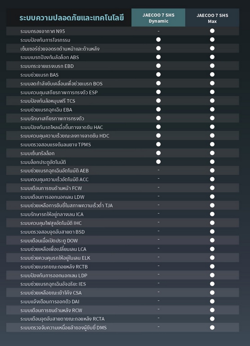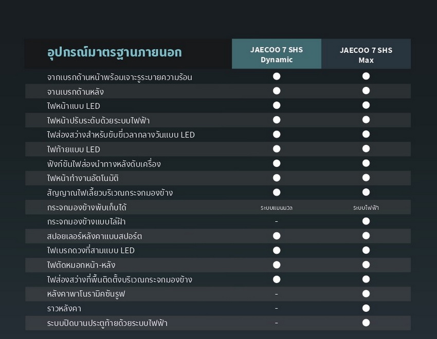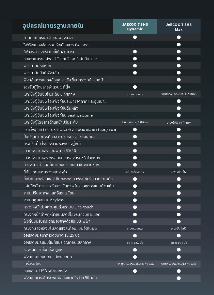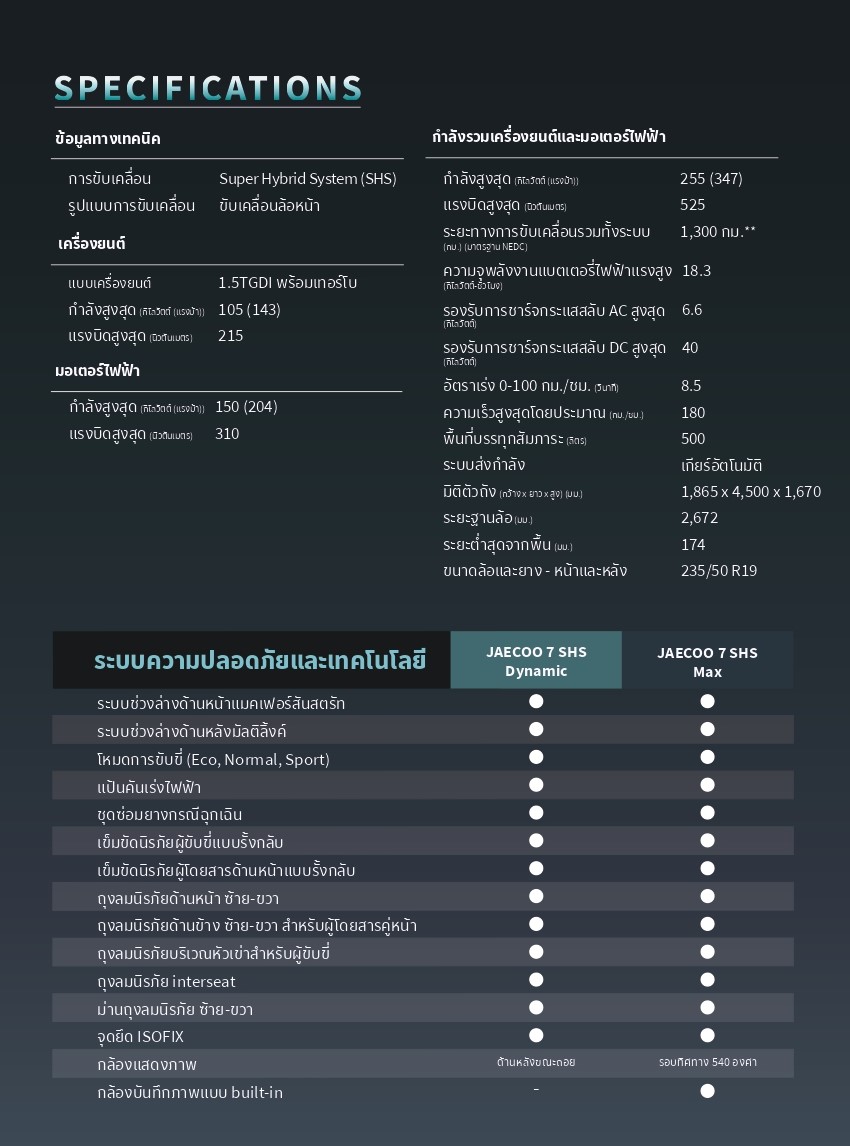 เปิดสเป็ค เปิดสเป็ค JAECOO 7 SHS