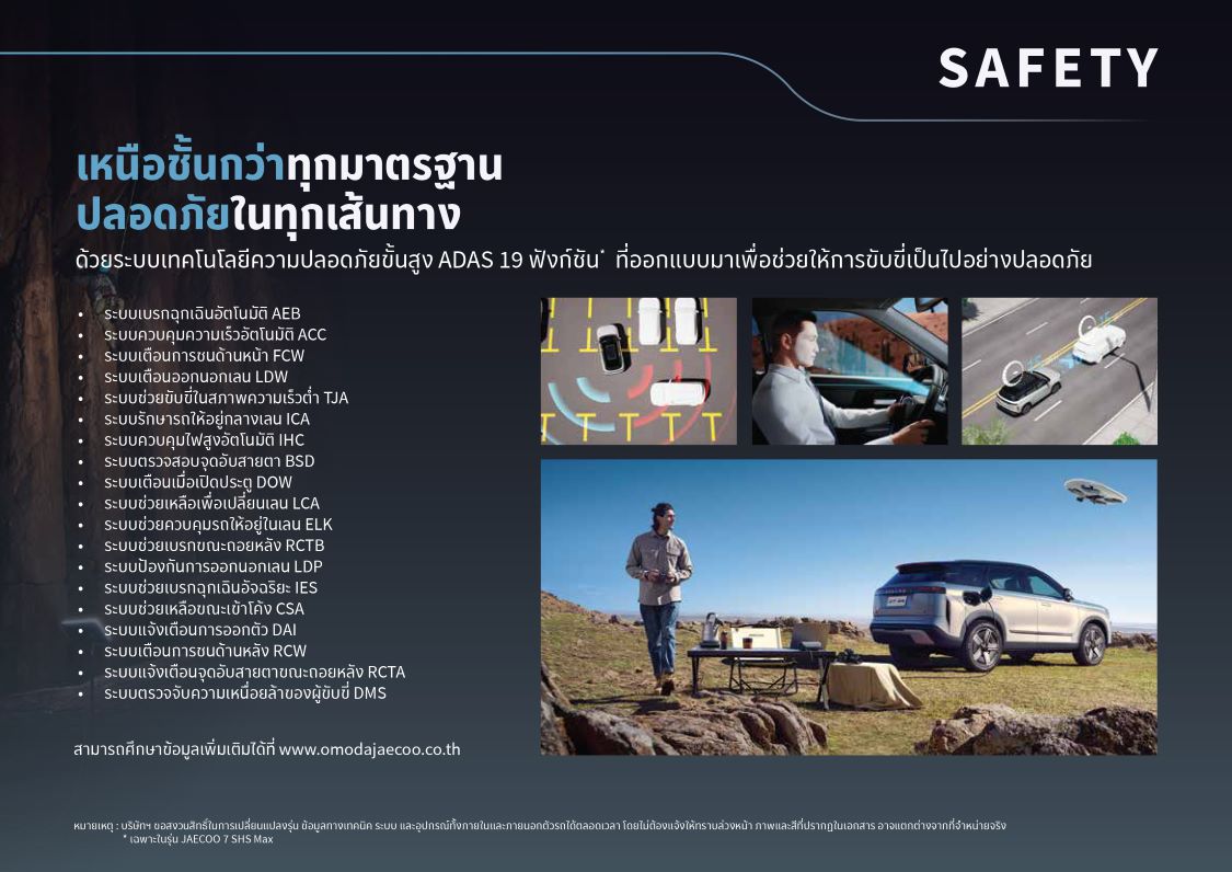 คุณพิชญุตม์ วงศ์พัฒนาสิน รองประธานบริษัท โอโมดา แอนด์ เจคู (ประเทศไทย) จำกัด กล่าวว่า "JAECOO 7 SHS เป็นยนตรกรรมที่ก้าวข้ามข้อจำกัดของรถปลั๊กอินไฮบริดทั่วไป ผสานจุดเด่นของทั้งรถไฟฟ้าและรถยนต์ไฮบริดไว้ในคันเดียว ไม่ว่าผู้ใช้จะต้องการความเงียบและประหยัดพลังงานสำหรับการเดินทางในเมือง หรือสมรรถนะอันทรงพลังสำหรับการเดินทางไกล JAECOO 7 SHS พร้อมตอบสนองทุกความต้องการอย่างลงตัว นี่คือตัวอย่างชัดเจนของปรัชญาการพัฒนาผลิตภัณฑ์ที่เน้นนวัตกรรมล้ำสมัย เป็นมิตรกับสิ่งแวดล้อม และตอบโจทย์ครอบครัวยุคใหม่ในราคาที่เข้าถึงได้ ทั้งยังประหยัดค่าใช้จ่ายการเดินทาง และค่าบำรุงรักษาอีกด้วย"