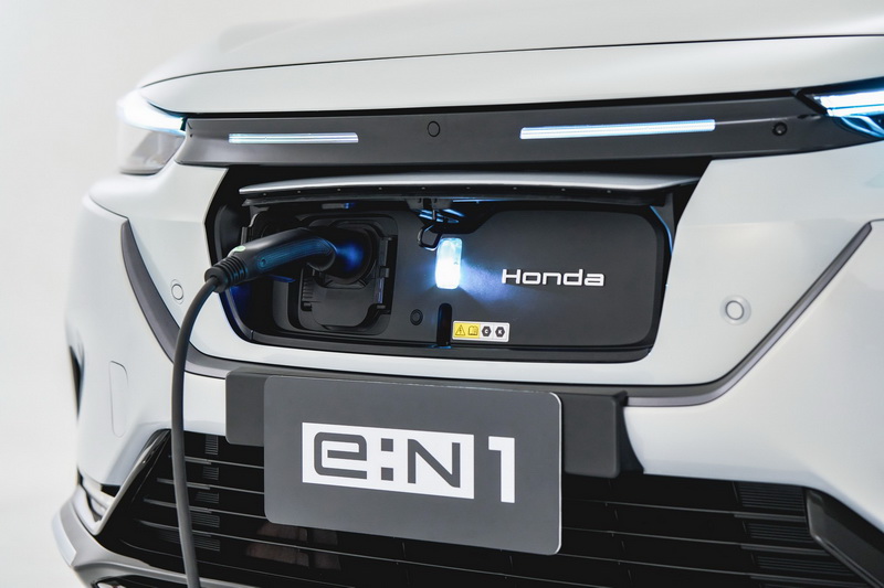 ช่องชาร์จแบตเตอรี่ด้านหน้าพร้อมไฟแสดงสถานะการชาร์จ ทำให้รู้สถานการณ์ชาร์จได้ง่ายและรวดเร็ว โลโก้ H Mark ใหม่ สไตล์พรีเมียมมินิมอล ที่จะเป็นสัญลักษณ์ของยนตรกรรมไฟฟ้าของฮอนด้า ที่มาพร้อมกับคำว่า Honda ภายใต้ฟอนต์ใหม่ที่ด้านหลังของตัวรถ