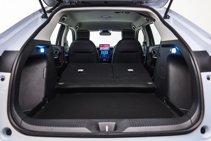 เอสยูวี ที่ขับเคลื่อนด้วยไฟฟ้าเต็มรูปแบบ โดดเด่นด้วยกระจังหน้าดีไซน์ใหม่เรียบหรูที่เชื่อมต่อกับไฟหน้าพร้อมจุดชาร์จแบตเตอรี่ และเส้นสาย LED แสดงสถานะขณะกำลังชาร์จไฟในรูปแบบเฉพาะตัว ตอบรับกับการใช้เส้นสายในแนวนอนที่ยาวต่อเนื่องจากไฟหน้าไปจนถึงไฟท้าย