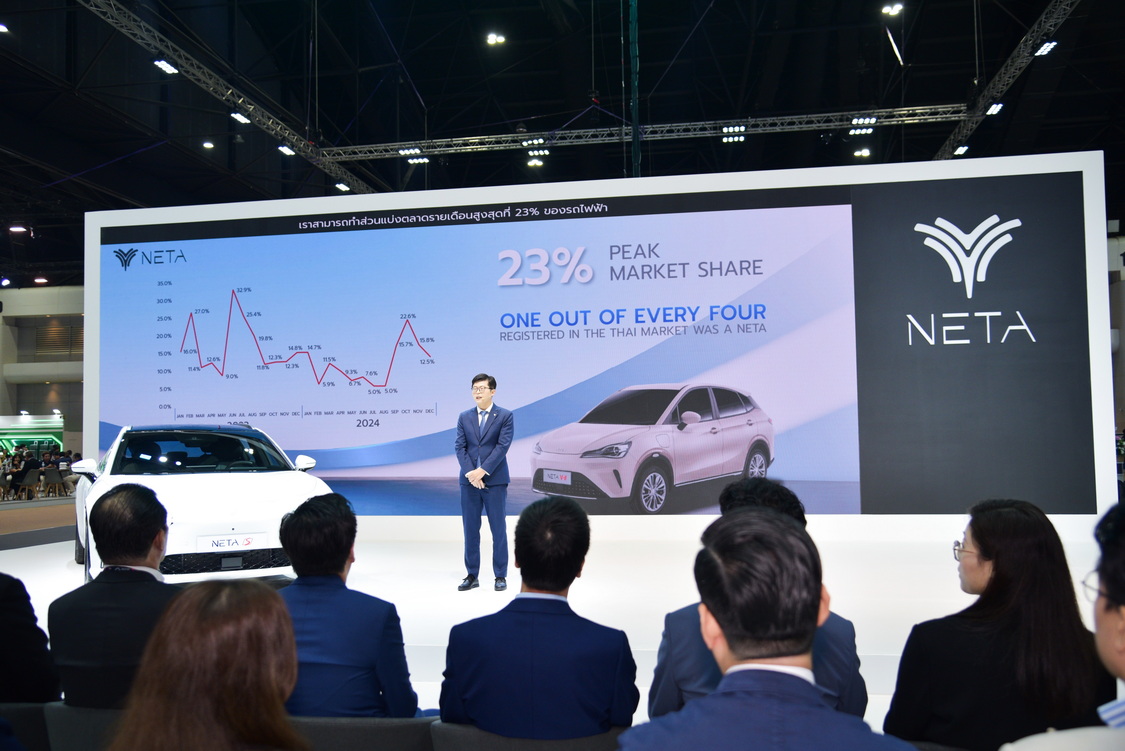 พร้อมกันนี้ NETA AUTO ได้ตั้งเป้าหมายขึ้นที่เป็นอันดับที่ 2 ของตลาดรถยนต์ไฟฟ้า BEV และมียอดขายรถยนต์ไฟฟ้า 10,000 คัน ในปี 2025 และเดินหน้าเปิดศูนย์บริการบำรุงรักษาแบตเตอรี่ สำหรับรถยนต์ไฟฟ้าเป็นแบรนด์แรกในประเทศไทย มุ่งผลักดันให้ประเทศไทยเป็นศูนย์กลางการส่งออกสู่ตลาดอาเซียน การปรับกลยุทธ์ครั้งนี้สะท้อนถึงความมุ่งมั่นของ NETA AUTO ที่จะขับเคลื่อนการเติบโตในตลาด BEV ให้ NETA สามารถขยายธุรกิจได้อย่างยั่งยืนในภูมิภาค ASEAN ซึ่งกำลังเติบโตอย่างรวดเร็วในตลาดรถยนต์ไฟฟ้า