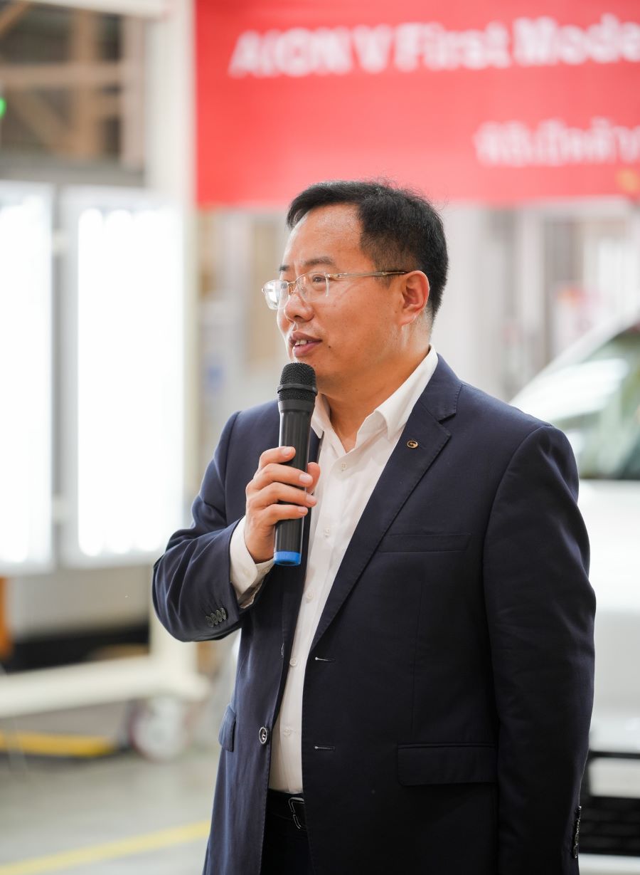 Mr. Wayne Wei - President of GAC International กล่าวว่า“ทุกฝ่ายได้ร่วมกันผลักดันให้สายการผลิตในประเทศไทยสามารถเริ่มดำเนินการได้สำเร็จ ภายในระยะเวลาเพียง 15 เดือน หลังจากเริ่มก่อสร้างโรงงาน การที่ AION V คันแรกสามารถเดินสายการผลิตได้สำเร็จในวันนี้ ถือเป็นหมุดหมายสำคัญอีกขั้นของกลยุทธ์ ONE GAC 2.0 ซึ่งมุ่งสู่การเติบโตอย่างยั่งยืนในระดับโลก เราขอขอบคุณทุกแรงสนับสนุนจากรัฐบาลไทย พันธมิตรธุรกิจ และทีมงาน GAC ประเทศไทย ที่ทุ่มเททำงานกันอย่างไม่รู้จักเหน็ดเหนื่อย”