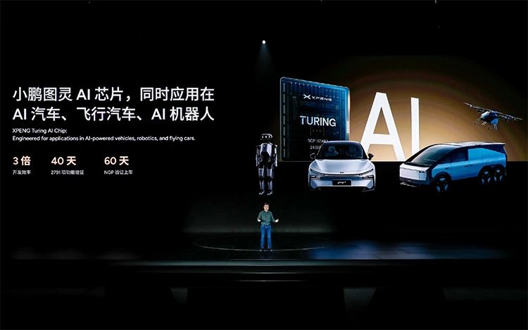 Turing AI Chip โปรเซสเซอร์ 40 คอร์ ถูกออกแบบมาเพื่อรองรับการขับอัตโนมัติระดับ 4 ด้วยความสามารถในการประมวลผล 3 หมื่นล้านพารามิเตอร์ โดยไม่ต้องพึ่งพาคลาวด์ เพิ่มแบนด์วิดท์การสื่อสาร 33 เท่า และประมวลผลภาพจากกล้องเร็วขึ้น 12 เท่า ชิปนี้ให้พลังประมวลผลเหนือกว่าถึง 3 เท่า หรือเทียบเท่า 3 ชิป NVIDIA Orin-X โดยทาง เอ็กซ์เผิง เตรียมเปิดตัวรถยนต์รุ่น Ultra ที่ใช้ Turing AI Chips หลายตัว รวมพลังประมวลผลสูงถึง 3,000 TOPS ปูทางสู่อนาคตของรถยนต์ไฟฟ้า หุ่นยนต์ และยานยนต์บินได้ ตามคอนเซปต์ หนึ่งสถาปัตยกรรม สร้างเทคโนโลยีไร้ขีดจำกัด’