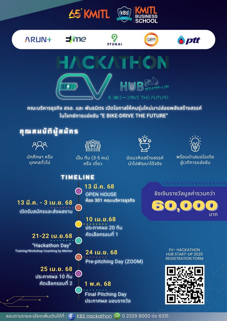 โครงการ EV- HACKATHON HUB START-UP 2025 โดยคณะบริหารธุรกิจ สถาบันเทคโนโลยีพระจอมเกล้าเจ้าคุณทหารลาดกระบัง (KMITL BUSINESS SCHOOL , KBS) เพื่อเฟ้นหาสุดยอดไอเดีย พร้อมแผนธุรกิจสำหรับจักรยานยนต์และจักรยานไฟฟ้าแห่งอนาคต ที่มีแนวคิดสร้างสรรค์และสามารถนำไปพัฒนาได้จริง ประชันไอเดียกันจนได้ทีมผู้ชนะไปแล้วเมื่อต้นเดือนพฤษภาคมที่ผ่านมา