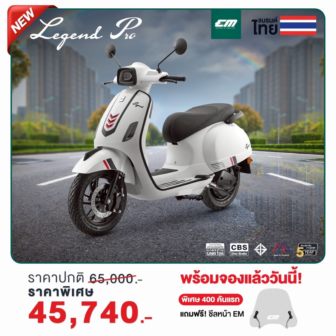นายธานัท ธรรมพรหมกุล กรรมการผู้จัดการ บริษัท อีเอ็ม มอเตอร์ จำกัด เปิดเผยว่า การเปิดตัวรถจักรยานยนต์ไฟฟ้ารุ่น “Legend Pro” ถือเป็นก้าวสำคัญของบริษัท ในการผลักดันมาตรฐานยานยนต์ไฟฟ้าของไทยให้ก้าวไกลมากยิ่งขึ้น โดยเน้นการออกแบบที่ทันสมัย ควบคู่กับเทคโนโลยีอัจฉริยะที่ตอบสนองการใช้งานจริง ที่ขับขี่ได้อย่างปลอดภัย มีประสิทธิภาพ ประหยัดพลังงาน และราคาที่เข้าถึงได้ เพื่อให้คนไทยทุกกลุ่มสามารถใช้งานรถจักรยานยนต์ไฟฟ้าได้อย่างแท้จริง