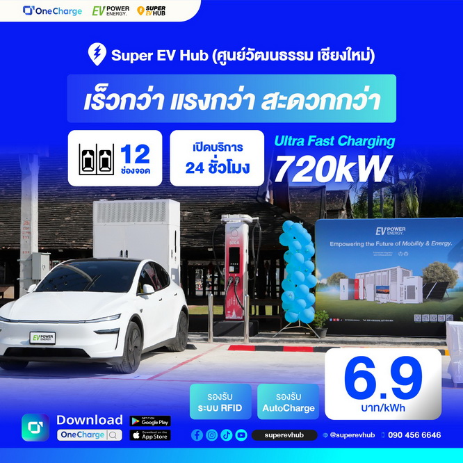 สถานีชาร์จ Super EV Hub ที่ศูนย์วัฒนธรรมเชียงใหม่ (แยกสนามบิน เซ็นทรัลเชียงใหม่ แอร์พอร์ต หรือ แยกแอร์พอร์ต) เปิดให้บริการด้วยเครื่องชาร์จ Huawei Ultra-Fast Charger 720kW จำนวน 6 ตู้ รวม12 หัวชาร์จ กำลังไฟสูงสุด 720kW (500A/375A) รองรับหัวชาร์จ CCS2 พร้อมให้บริการผู้ใช้รถ EV ทั่วไปและ Taxi EV ที่เดินทางใน-นอกเมือง คิดค่าชาร์จ 6.9 บาท/kWh เปิดให้บริการแบบ Soft Opening ตั้งแต่วันที่ 17 พฤศจิกายน 2568