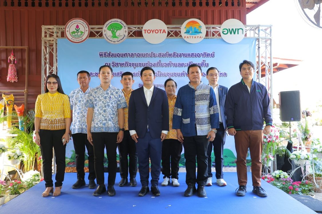 นายสิริวิทย์ ปรีชาศุทธิ์ ผู้อำนวยการฝ่ายวางแผนองค์กร บริษัท โตโยต้า มอเตอร์ ประเทศไทย จำกัด ส่งมอบศาลาอเนกประสงค์พลังงานแสงอาทิตย์ พร้อมจักรยานไฟฟ้า ให้แก่ วิสาหกิจชุมชนท่องเที่ยวตำบลตะเคียนเตี้ย และชมรมส่งเสริมการท่องเที่ยวโดยชุมชนตำบลหนองปลาไหล เพื่อต่อยอด “โครงการพัฒนาเมืองต้นแบบที่ยั่งยืนปราศจากมลภาวะ” เชื่อมต่อการเดินทางจากพัทยาสู่แหล่งท่องเที่ยวชุมชน เมื่อวันที่ 19 ธันวาคม 2567