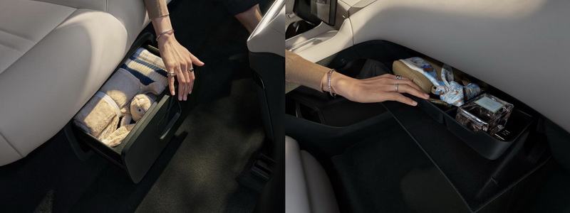 ใต้แผงคอนโซลกลางมีแท่นชาร์จไร้สายคู่กำลังไฟ 80 W ที่ออกแบบช่องระบายอากาศแบบซ่อน ช่วยให้โทรศัพท์ชาร์จเร็วโดยไม่ร้อนเกินไป กระจกแต่งหน้าบนแผงบังแดดทั้งฝั่งคนขับและผู้โดยสารตอนหน้าสามารถปรับความสว่างและอุณหภูมิสีได้ 3 ระดับเพื่อการมองเห็นที่ชัดเจนขึ้น