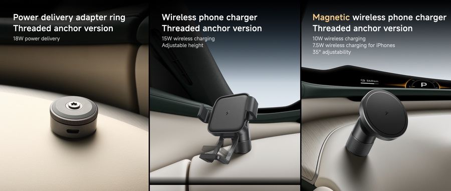 ระบบนิเวศ “Human X Car X Home” ได้รับการอัปเกรดหลายอย่างในครั้งนี้ พอร์ต Dual-thread ทั้งสองด้านของแดชบอร์ดสามารถจ่ายไฟได้ถึง 27W สำหรับอุปกรณ์เสริม เช่น กล้องแอคชั่นหรือโทรศัพท์มือถือ ภายในห้องโดยสารมีจุดยึดแม่เหล็ก 9 จุดสำหรับอุปกรณ์เสริม เช่น กล่องทิชชู กล่องแว่นตา และปุ่มควบคุมที่เป็นแม่เหล็ก รวมถึงที่ยึดโทรศัพท์ไร้สายแบบแม่เหล็กที่เพิ่มเข้ามาใหม่ นอกจากนี้ ฐานกระจกมองหลังยังรองรับการขยายสำหรับติดตั้งกล้องกิมบอล 4K และเซ็นเซอร์ตรวจจับการเคลื่อนไหวเชิงพื้นที่ด้วย AI