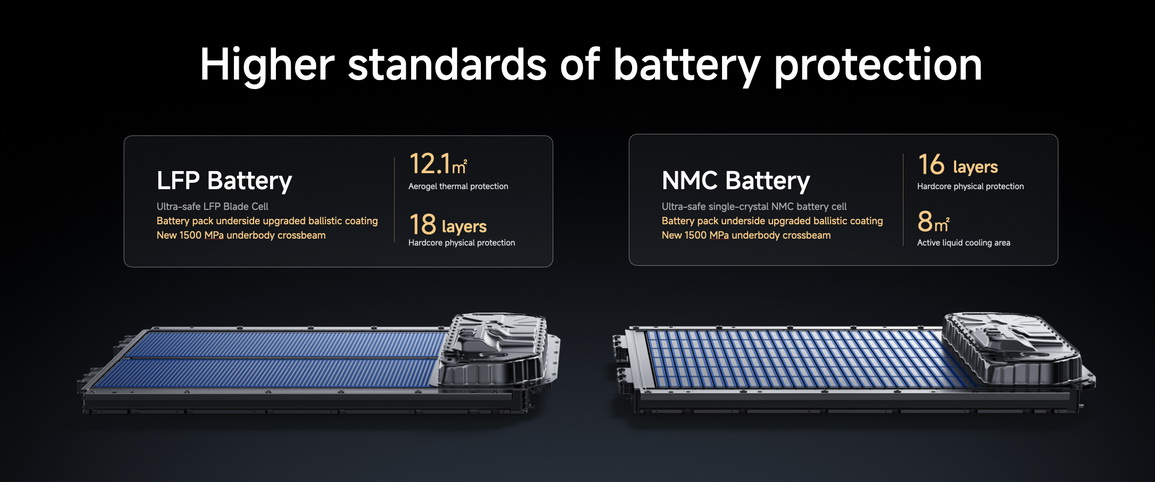 ในด้านการป้องกันแบตเตอรี่ ทั้งแบตเตอรี่ลิเธียมไอออนฟอสเฟตและแบตเตอรี่ลิเธียมเทอร์นารีใน Xiaomi YU7 เป็นไปตามมาตรฐานความปลอดภัยที่สูงเป็นพิเศษ ซึ่งเกินข้อกำหนดความปลอดภัยของแบตเตอรี่แห่งชาติฉบับใหม่ของจีนปี 2025 ไปแล้ว นอกจากนี้ Xiaomi YU7 ยังใช้ “สารเคลือบกันกระสุน” แบบเดียวกับที่ใช้ที่ด้านล่างของชุดแบตเตอรี่ของ Xiaomi SU7 Ultra และได้มีการเพิ่มคานกันรอยขีดข่วนความแข็งแรง 1,500 MPa ไว้ที่ใต้ท้องรถ เพื่อให้การป้องกันเซลล์แบตเตอรี่ที่ดียิ่งขึ้นในสภาพถนนที่ขรุขระและท้าทาย
