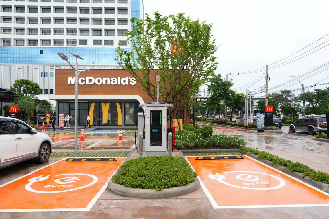 สถานีชาร์จ Evolt ที่ McDonald's “Green Concept” สาขาเลียบคลองสอง เขตคลองสามวา ติดตั้งสถานีชาร์จ DC CCS 120 kW จำนวน 1 เครื่อง 2 หัวจ่าย 2 ช่องชาร์จ