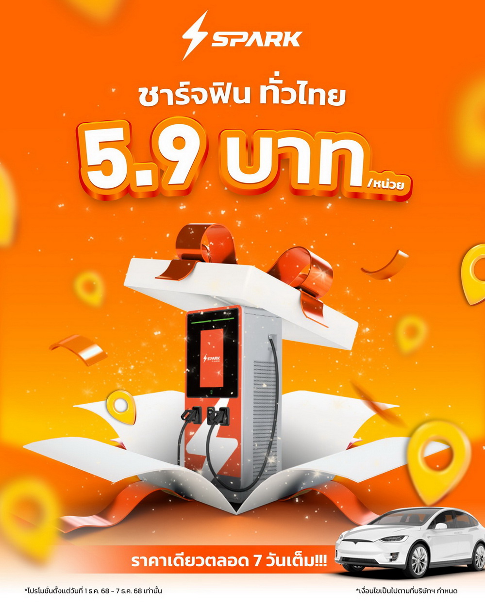 5.9 บาท/หน่วย! SparkEV กดราคาพิเศษส่งท้ายปี ทุกสถานี 1-7 ธ.ค. 2568