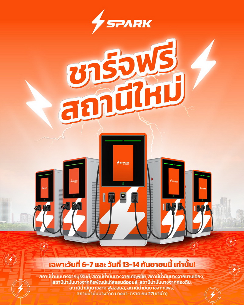 ชาร์จฟรีมีอยู่จริง! Spark EV เสิร์ฟโปรฯแรงฉลองเปิดตัวสถานีชาร์จใหม่ 8 แห่ง
