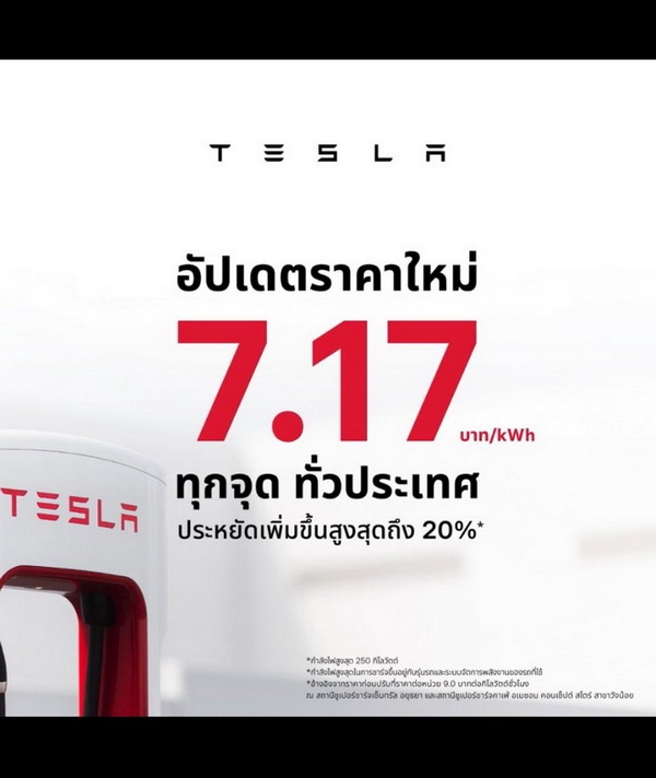 อัพเดตค่าชาร์จ TESLA SUPER CHARGE