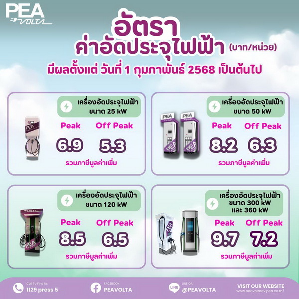 PEA VOLTA จัดโปรลดราคาค่าบริการสถานีอัดประจุไฟฟ้า ทุกขนาดกำลังไฟ พร้อมแยกอัตราชาร์จตาม “ช่วงเวลา” ให้สามารถวางแผนได้ประหยัดกว่าเดิม!