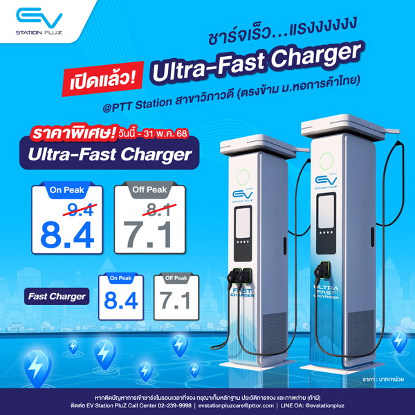 รวมทั้งเปิดตัวเครื่องชาร์จ Ultra-Fast Charger เทคโนโลยี Liquid-Cooled กำลังไฟแรงสูงสุด 480 kW สามารถชาร์จถึงระดับ 80% ภายใน 15 นาที ที่ PTT Station สาขาวิภาวดี ตรงข้าม ม.หอการค้าไทย เมื่อต้นเดือน เม.ย 2568