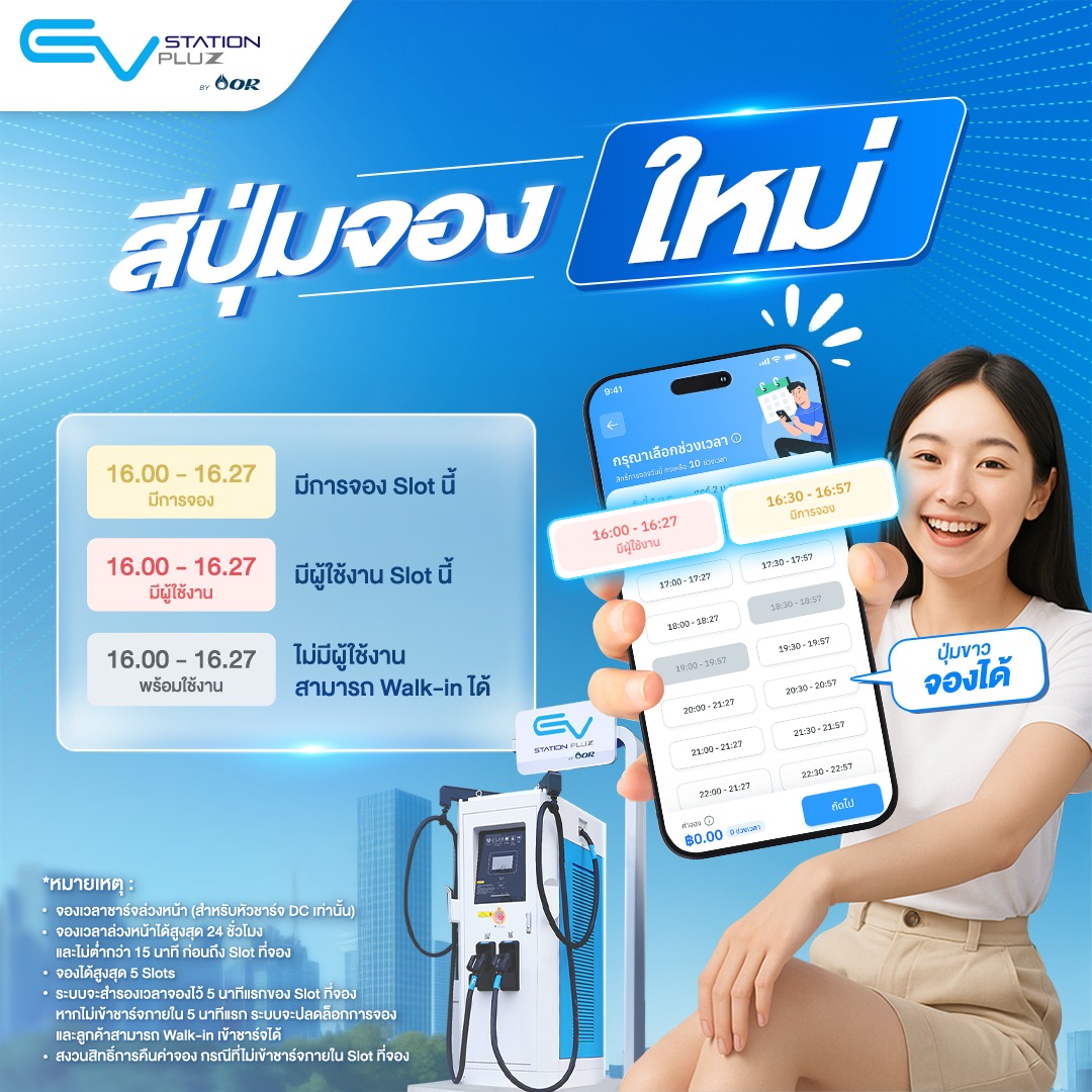 EV Station PluZ อัพเดตสีปุ่มจองใหม่ โดยสีต่างๆจะมีความหมายดังนี้