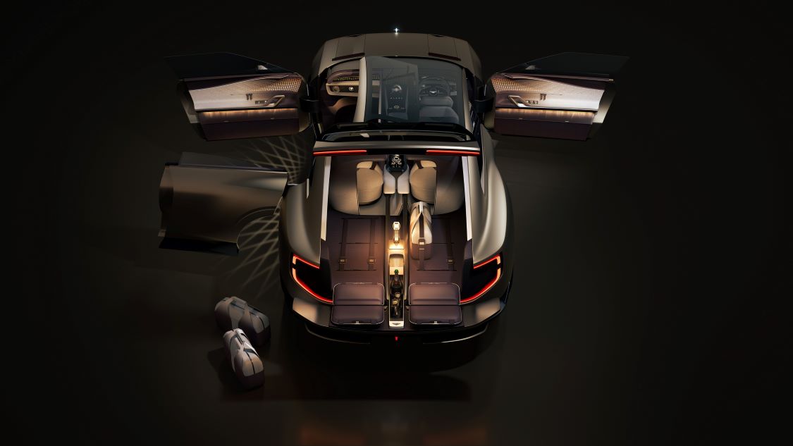 ด้านหลังซุ้มล้อหน้ามีช่องระบายอากาศขนาดใหญ่สองช่องที่จะช่วยระบายอากาศ กระจายน้ำหนักตัวถัง และเพิ่มความน่าสนใจให้กับรูปลักษณ์ภายนอก ไฟท้ายที่เพรียวบางขึ้น ทอดยาวไปบนกรอบขนาดใหญ่ ‘Prestigious Shield’ ที่ยื่นออกมาเพื่อประสิทธิภาพตามหลักอากาศพลศาสตร์ เผยให้เห็นความลึกแบบ 3 มิติที่สวยงาม และการตีความลวดลายเพชรที่งดงามในอีกรูปแบบหนึ่ง องค์ประกอบด้านอากาศพลศาสตร์ยังมาพร้อมกับสปอยเลอร์คู่แบบแอคทีฟที่กางออกจากปลายหลังคาที่ลาดเอียงไปด้านหลัง และดิฟฟิวเซอร์แบบแอคทีฟที่ขอบล่างด้านหลังสุดของตัวรถ