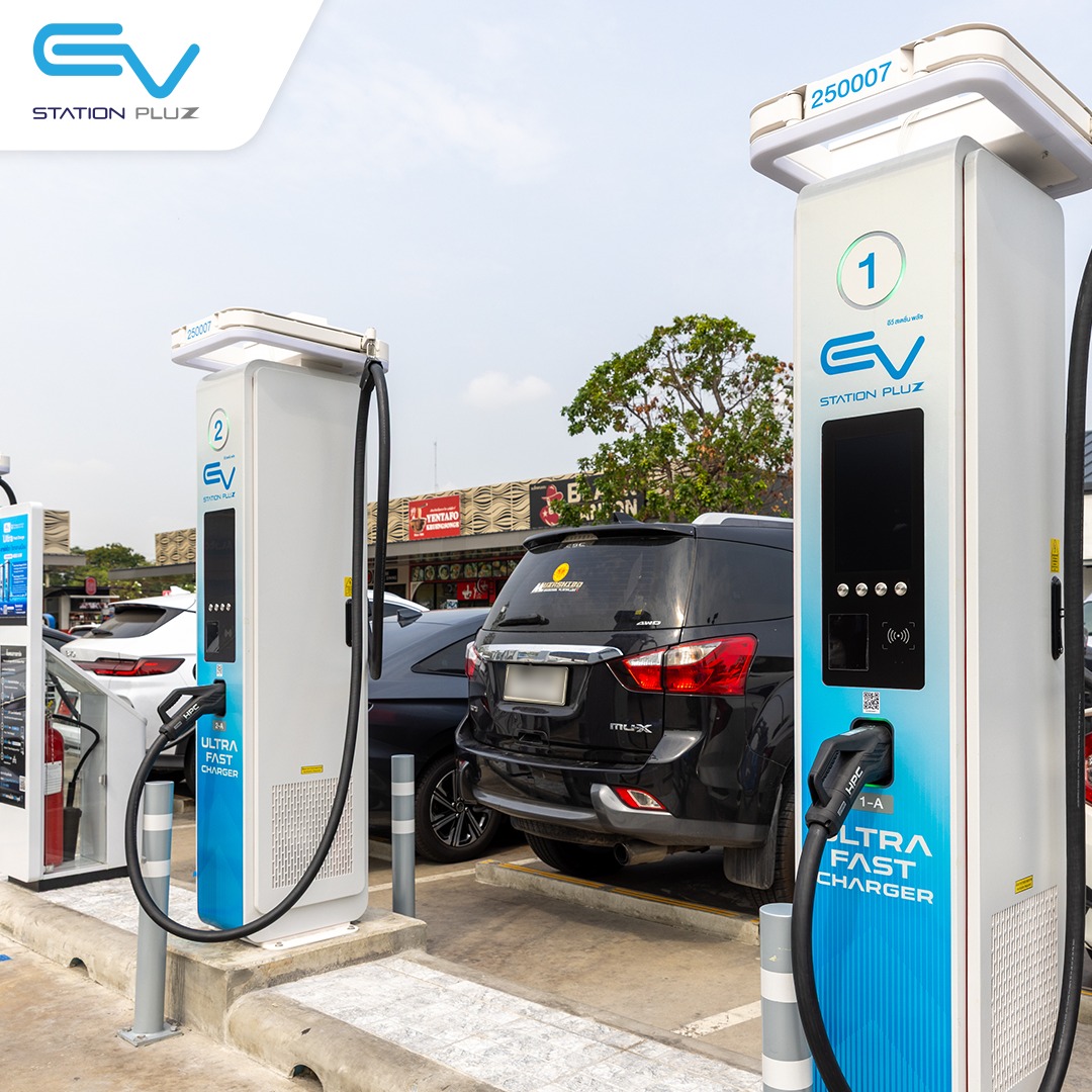 EV Station PluZ เสิร์ฟจุดชาร์จแบบจัดเต็ม 10 หัวชาร์จ ที่ PTT Station สาขาวิภาวดี (ตรงข้าม ม.หอการค้าไทย) จัดเต็มทั้ง Ultra Fast Charge 480 kW 3 + Fast Charge 240 kW 4 + Fast Charge 120 kW 2 และพ่วงเครื่องชาร์จ AC Charger ขนาด 7 kW เพื่อรองรับการชาร์จรถ PHEV อีก 1 หัวชาร์จ