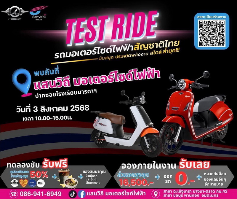ติดต่อผู้แทนจำหน่าย I-Motor เพื่อทดลองขับขี่รถมอเตอร์ไซค์ และติดตามข้อมูล รวมทั้งกิจกรรมต่างๆ ได้ที่ www.imotorthailand.com หรือ Facebook : I-Motor Thailand และ ฝ่ายขาย โทร. 064-494 9129