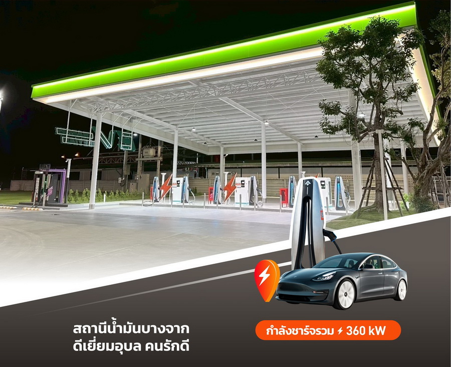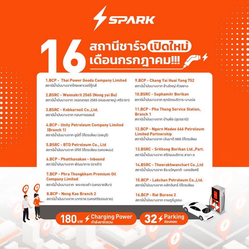 ก่อนหน้านี้ Spark EV เสิร์ฟสถานีชาร์จในร่มขนาด 6 ช่องชาร์จ กำลังชาร์จรวม 360kW เปิดบริการ 24 ชั่วโมง ที่ปั๊มบางจากดีเยี่ยมอุบลคนรักดี