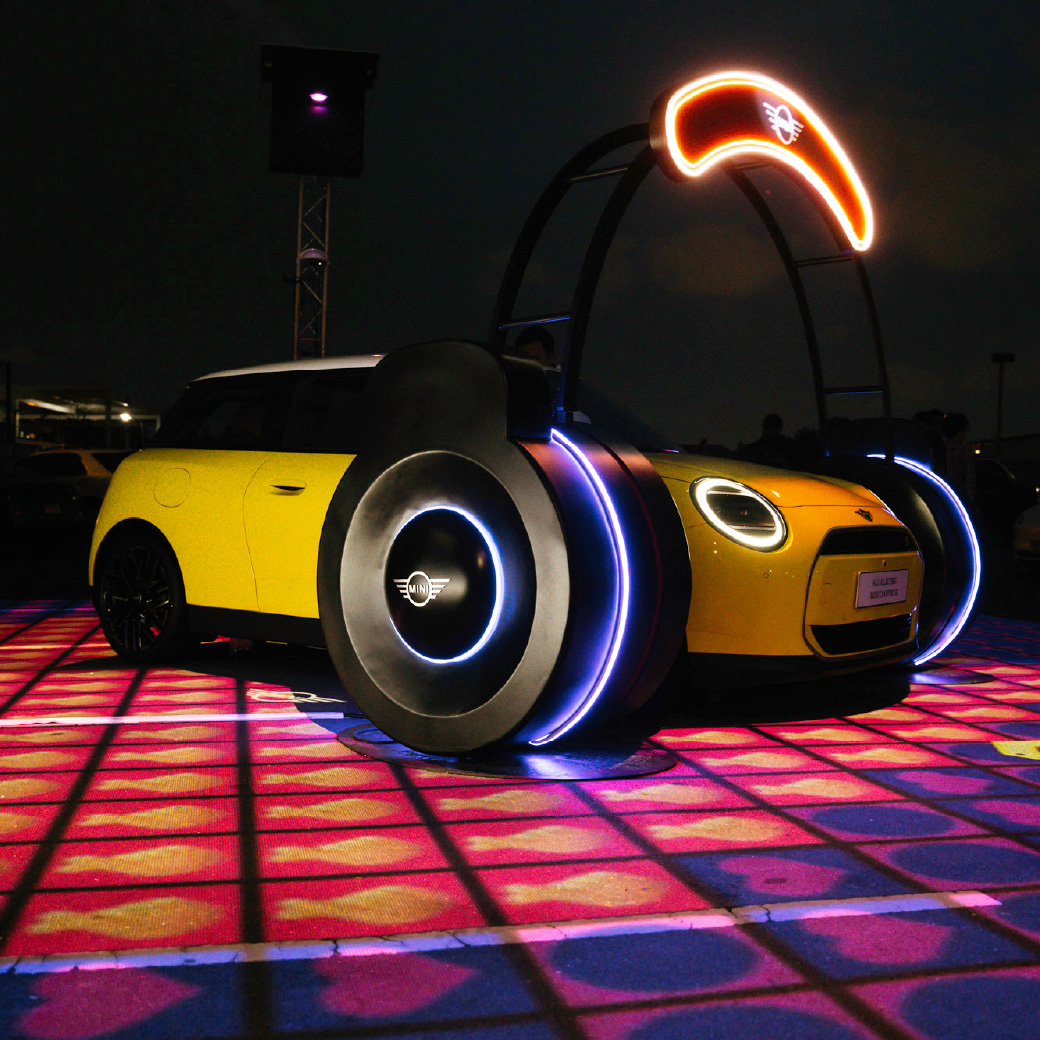 ที่โดดเด่นไม้แพ้ใครก็คือบริเวณลานจอดรถช้าง (Chang Park) ที่ค่ายมินินำ ALL-ELECTRIC MINI COOPER SE มาจัดแสดงในรูปแบบไลติ้งอาร์ตโดยได้แรงบันดาลใจจาก MINI Experience Modes โหมดการขับขี่อันเป็นเอกลักษณ์ที่สามารถปรับเปลี่ยนได้ถึง 7 รูปแบบตามการปรับโหมดในห้องโดยสาร และดึงดูดผู้คนด้วยเฮดโฟนใหญ่ยักษ์สะดุดตาที่สื่อถึงพลังของเครื่องเสียงภายในรถมินิ