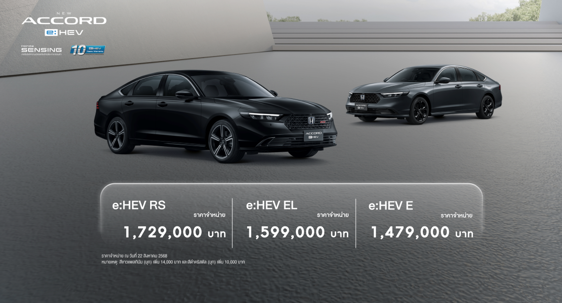 ฮอนด้า เปิดตัว แอคคอร์ด อี:เอชอีวี ใหม่ ราคาเริ่มต้น 1,479,000 บาท เพิ่ม Blind Spot Information และ Cross Traffic Monitor ในทุกรุ่นย่อย พร้อมยกขบวนไลน์อัปรถ xEV หลากหลายเซกเมนต์ ทั้งรถ e:HEV และรถยนต์ไฟฟ้า จัดแสดงที่งาน BIG MOTOR SALE 2025 วันที่ 22 – 31 ส.ค. 68 และโชว์รูมฮอนด้าทั่วประเทศ