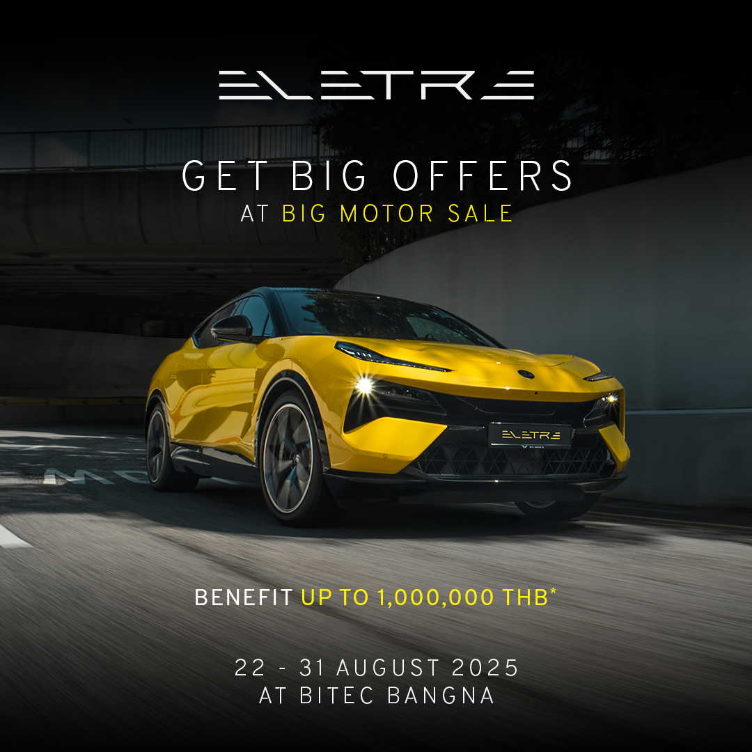 โลตัส คาร์ ประเทศไทย ยกทัพยานยนต์ไฟฟ้าสมรรถนะสูง เข้าร่วมงาน “Bangkok International Grand Motor Sale 2025” หรือ “Big Motor Sale 2025” รุกตลาดใหม่เปิดโอกาสให้ผู้ที่สนใจรถยนต์แบรนด์ LOTUS ได้สัมผัสประสบการณ์ความล้ำสมัยของ Lotus ครบทุกรุ่น พร้อมส่งมอบ และเปิดจองล่วงหน้าสำหรับรถโมเดลเยียร์ใหม่ (Model Year 26) ให้เป็นเจ้าของรถยนต์ล็อตแรกด้วยข้อเสนอสุดเอ็กซ์คลูซีฟ ตั้งแต่วันที่ 22 – 31 สิงหาคม 2568 ที่บูธรถยนต์ Lotus Cars Thailand (A21) ณ ศูนย์แสดงสินค้าและการประชุม ไบเทค บางนา