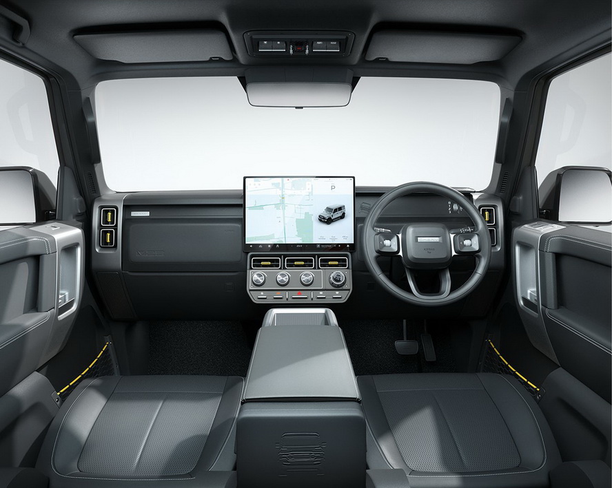 คอนโซลออกแบบในแนวเหลี่ยม มีจออินโฟเทนเมนต์แบบลอยเด่นตรงกลาง (floating display) มีแผงควบคุมฟังก์ชันแบบ physical button มีปุ่มต่างๆค่อนข้างเยอะ เพื่อให้ผู้ขับสัมผัสได้โดยไม่ต้องคลำในเมนูจอมากเกินไป เหมาะกับสายลุย จอแสดงผลที่ขับเคลื่อนด้วยชิป 8155 Snapdragon เชื่อมต่อได้เร็ว ลื่น ไม่มีสะดุด ควบคุมทุกฟังก์ชัน ทั้งระบบปรับอากาศ โหมดการขับขี่ ไปจนถึงความบันเทิงแบบเต็มตาบนหน้าจอสัมผัสขนาดใหญ่