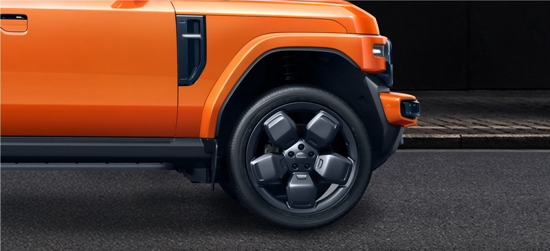 ซุ้มล้อกว้าง ตีโป่งสไตล์ออฟโรด มาพร้อมกันชนสายลุย บันไดข้าง คิ้วตกแต่ง ให้ลุคที่ดูบึกบึน พร้อมลุยด้วยมุม approach หรือมุมไต่สุดโหด 43° พร้อมปีนป่ายเนินชันเต็มตัว