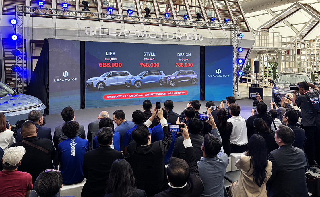 Leapmotor Thailand บุกตลาดรถยนต์ไฟฟ้า กลุ่ม C-Segment ในประเทศไทย ด้วยการเปิดตัว Leapmotor B10 พร้อมกัน 3 รุ่นย่อย Life, Style และ Design มาพร้อมแบตเตอรี่ขนาด 56.2 kWh และขนาด 67.1 kWh วิ่งได้ไกล 442 km. และ 516 km./ชาร์จ ตามมาตรฐาน NEDC สมรรถนะการขับขี่ปรับจูนโดยทีมวิศวกรของ Stellantis และเทคโนโลยี Cell-To-Chassis 2.0 และระบบปฏิบัติการ LEAP3.5 รองรับ Apple Carplay และ Android Auto และการอัปเดตซอฟต์แวร์แบบ OTA ใหม่ล่าสุด เสิร์ฟแคมเปญ PRE Booking ราคาเริ่มต้น 688,000 บาท มีรถพร้อมส่งมอบแล้วตั้งแต่ 10 ต.ค. 2568