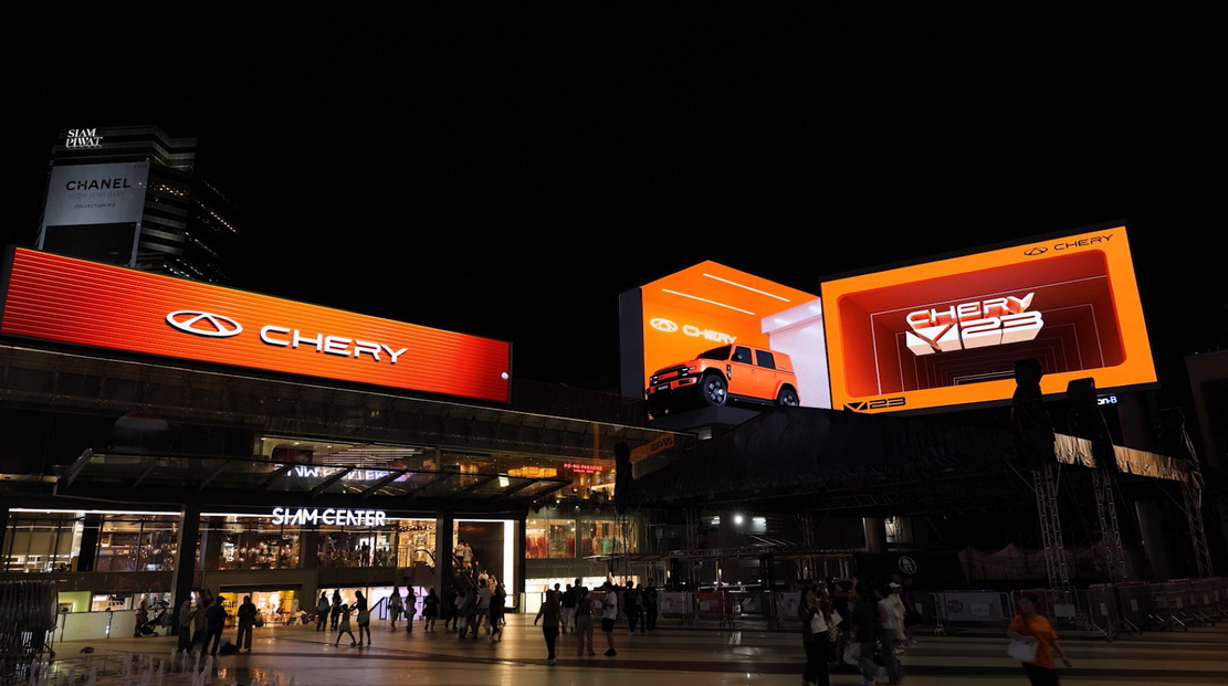 CHERY (เชอรี) เดินหน้าสร้างปรากฏการณ์ใหม่ให้วงการยานยนต์ไทย เปิดตัวแคมเปญ CHERY V23 - WE ARE BORN TO PLAY! โปรโมต CHERY V23 รถยนต์ไฟฟ้า EV ดีไซน์เท่สำหรับคนเมือง ด้วย 3D Billboard ดึงดูดทุกสายตาตามแลนด์มาร์กสำคัญๆ เช่น บนจอ “Parc Paragon The 90 Degree” และ Interchange 21 รวมทั้งยึดพื้นที่บริเวณทางด่วนพระราม 4 ด้วย “The 20” ชุดจอดิจิทัลที่เรียงกัน 37 ต้น 74 จอ ระยะทางยาวกว่า 2.5 กิโลเมตร นับเป็นการสร้างปรากฏการณ์ครั้งสำคัญของวงการ EV