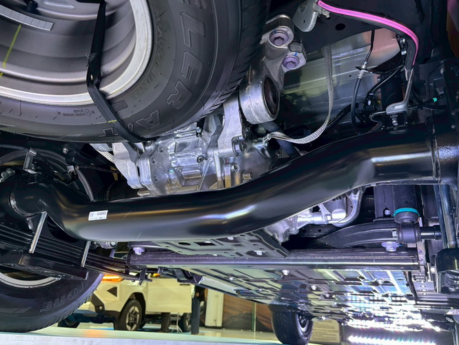 การย้าย Differential ขึ้นบนเฟรม ยังช่วยลดการบิดตัวของเพลาเวลาเร่งแรง ๆ (Torque Reaction) ทำให้การถ่ายแรงบิดจากมอเตอร์หลังไปล้อเนียนกว่าเดิม โดย Toyota ใช้แขนควบคุมแนวนอน (Trailing Arm) เพื่อปรับมุม Toe/ Camber ได้ ซึ่งปกติรถกระบะคานแข็งจะทำไม่ได้ ทำให้ “ขับเร็วก็มั่นคง ขับช้าก็นุ่ม ขับลุยก็ยังทน”