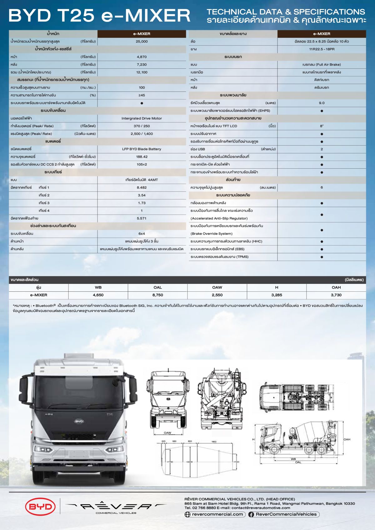 สเปค BYD T25 e-Mixer รถโม่ผสมคอนกรีตพลังงานไฟฟ้า