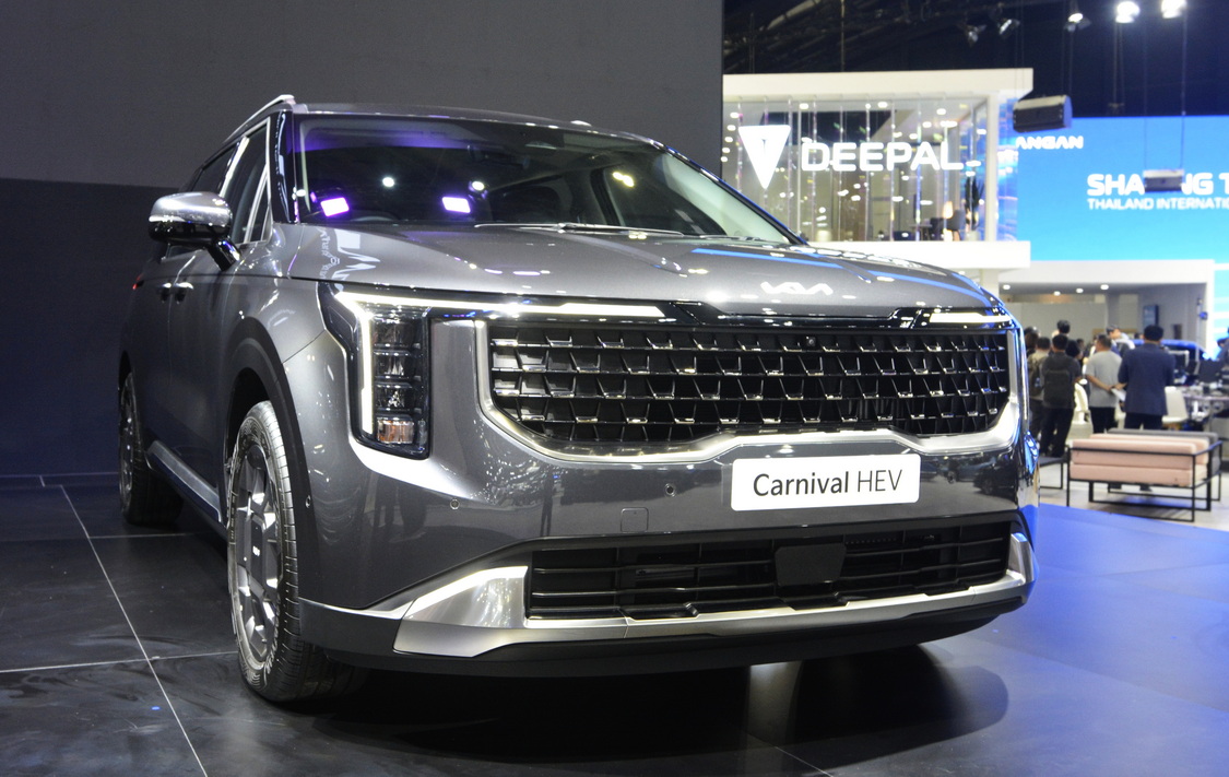 The new Kia Carnival HEV 7-seater เอ็มพีวีรุ่นใหม่ล่าสุด ขับเคลื่อนด้วยเครื่องยนต์เบนซินไฮบริด 1.6 ลิตร เทอร์โบ ทำงานร่วมกับมอเตอร์ไฟฟ้าขนาด 54 kWh และเกียร์อัตโนมัติ 6 สปีด ให้กำลังรวมสูงสุด 245 แรงม้า แรงบิดสูงสุด 367 นิวตันเมตร ดีไซน์ภายนอก ใหม่ มาพร้อมกระจังหน้า Tiger Nose อันเป็นเอกลักษณ์ของเกีย ผสานไฟหน้า–ไฟท้าย LED Star Map และล้ออัลลอยดีไซน์ใหม่ขนาด 19 นิ้ว เพิ่มความหรูหราและพรีเมียมยิ่งขึ้นโดดเด่นด้วยจอโค้งพาโนรามิกขนาด 12.3 นิ้ว เชื่อมต่อกับหน้าจออินโฟเทนเมนต์แบบสัมผัส 12.3 นิ้ว รองรับ Apple CarPlay และ Android Auto แบบไร้สาย มีให้เลือก 2 รุ่นย่อย ได้แก่ The new Kia Carnival HEV 7-seat Luxury ราคา และ The new Kia Carnival HEV 7-seat Premium ราคาเริ่มต้น 2,499,000 บาท