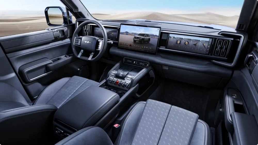 · ห้องโดยสารดีไซน์เพิ่มความดื่มด่ำระหว่างการเดินทางสำรวจด้วยหลังพาโนรามิกซันรูฟเปิด-ปิดด้วยไฟฟ้าแบบเต็มบาน เบาะคู่หน้าปรับไฟฟ้าฝั่งคนขับปรับได้ 12 ทิศทาง เบาะผู้โดยสารด้านหน้าปรับได้ 10 ทิศทาง วัสดุหุ้มเบาะระดับพรีเมียม รองรับการระบายอากาศและระบบอุ่นเบาะ ทั้งยังยกระดับประสบการณ์ระหว่างการผจญภัย ด้วยกล่องควบคุมอุณหภูมิ ที่สามารถเก็บเครื่องดื่มที่ชื่นชอบ ปรับให้ร้อนหรือเย็นได้ตามต้องการ ทั้งยังมีระบบไฟสร้างบรรยากาศในห้องโดยสาร ปรับได้หลากหลายสี และ ยังมีระบบน้ำหอมปรับอากาศภายในห้องโดยสาร