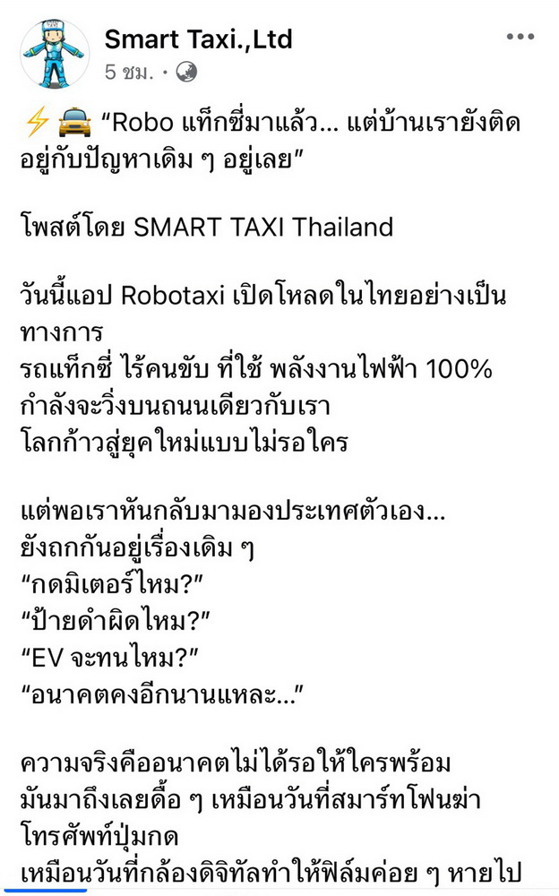 โพสต์ของ Smart Taxi สะท้อนภาพจริงแบบเจ็บ ๆ ว่า ไทยยังถกเถียงเรื่องป้ายดำ/มิเตอร์ ในขณะที่โลกรอไม่ไหวแล้ว