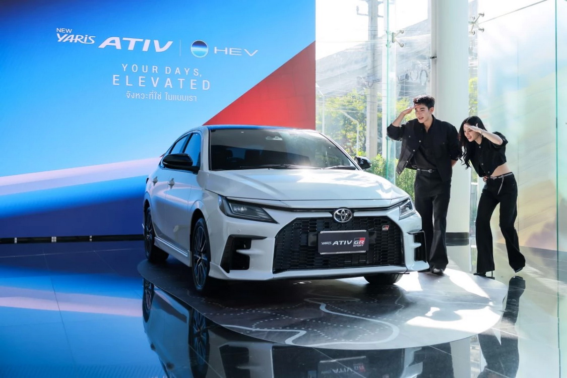 แอลลี่ อชิรญา นิติพน และ โฟร์ท ณัฐวรรธน์ จิโรชน์ธิกุล พรีเซนเตอร์ NEW YARIS ATIV HEV “YOUR DAYS, ELEVATED…จังหวะที่ใช่ ในแบบเรา” เดินทางมารับรถ NEW YARIS ATIV HEV รุ่น HEV GR SPORT พร้อมร่วมกิจกรรมทดลองขับ เพื่อทดสอบระบบความปลอดภัยแบบครบครัน กับ TOYOTA SAFETY SENSE โดยพรีเซนเตอร์ทั้งสองคนต่างเห็นตรงกันว่าเป็นรถที่ขับสนุก โดยโฟร์ทเลือกรถสีดำ ATTITUDE BLACK MICA และแอลลี่เลือกรถสีแดง RED MICA METALLIC สะท้อนความเป็นตัวเอง โดนเด่น สปอร์ต