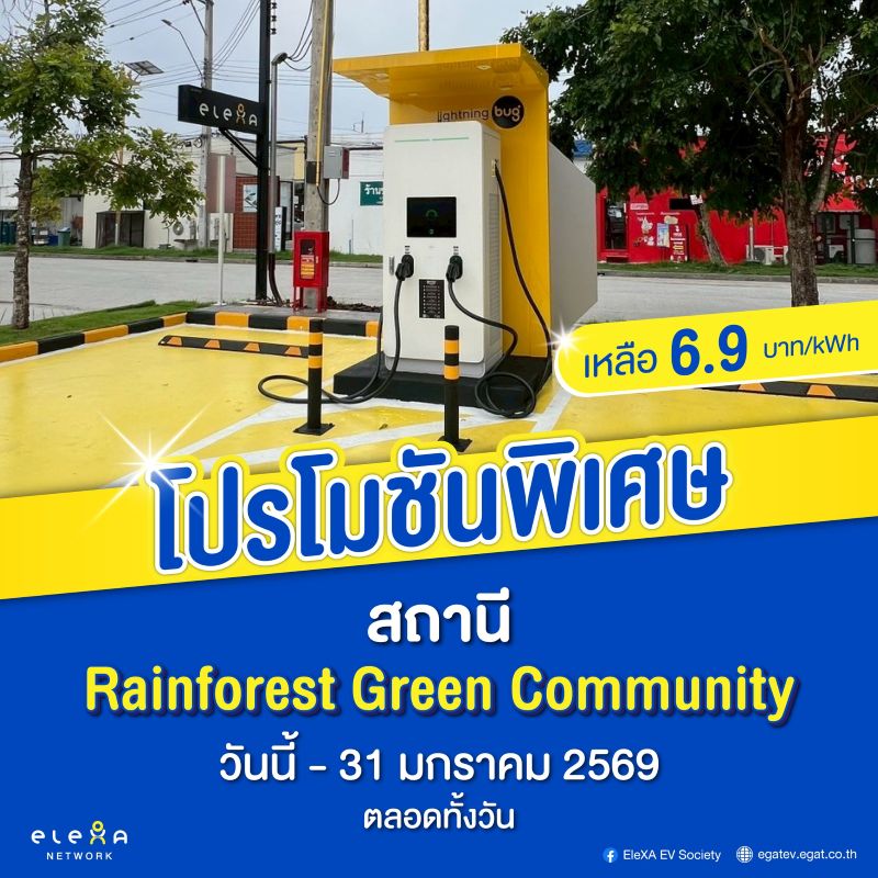 สถานี Rainforest Green Community กิ่งแก้ว ลดราคาค่าชาร์จเหลือ 6.9 บาท/kWh ชาร์จผ่านแอปพลิเคชัน EleXA ตั้งแต่ วันนี้ - 31 มกราคม 2569